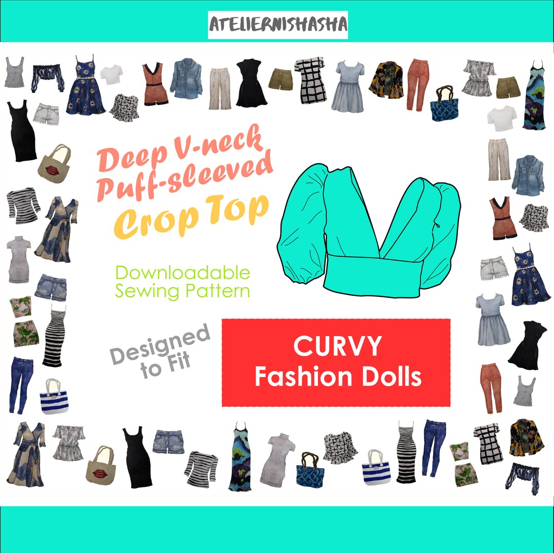 Pdf Sewing Pattern Deep V Neck Puff Sleeves Crop Top For Etsy